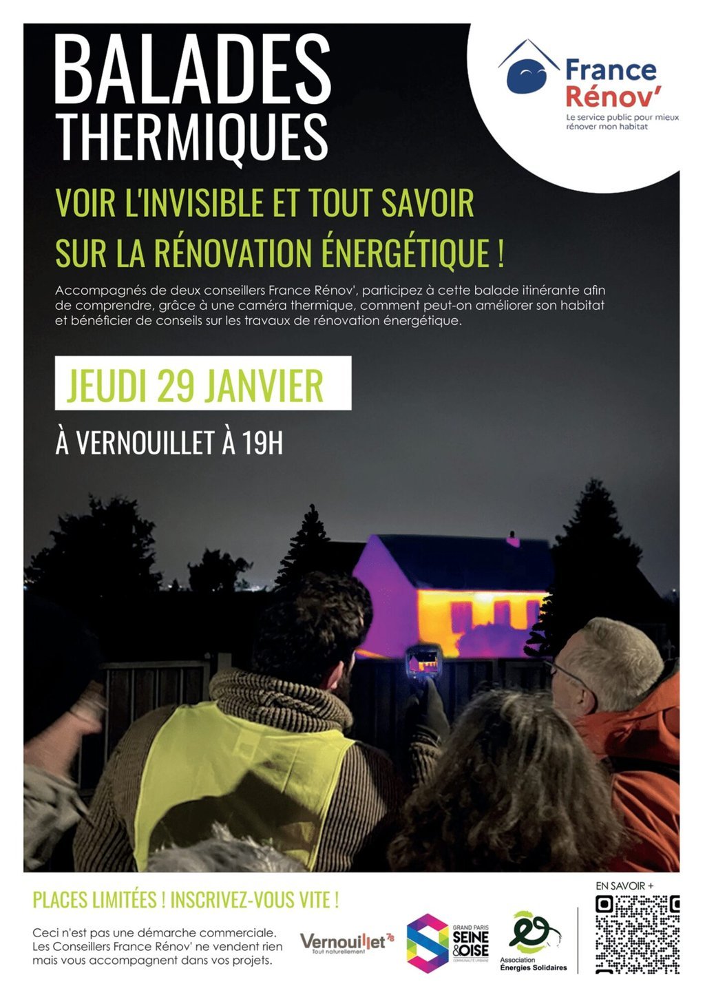 En partenariat avec les conseillers de France Rénov’ et GPSEO, la Ville propose une balade thermique pour mieux comprendre le fonctionnement énergétique de votre logement et identifier les pistes d’amélioration possibles.