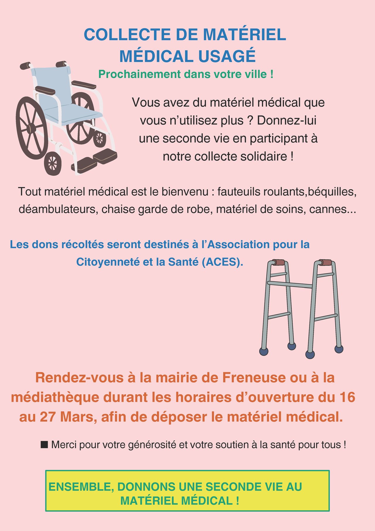 Prochainement à Freneuse, redonnez de l'utilité à votre matériel médical usagé !