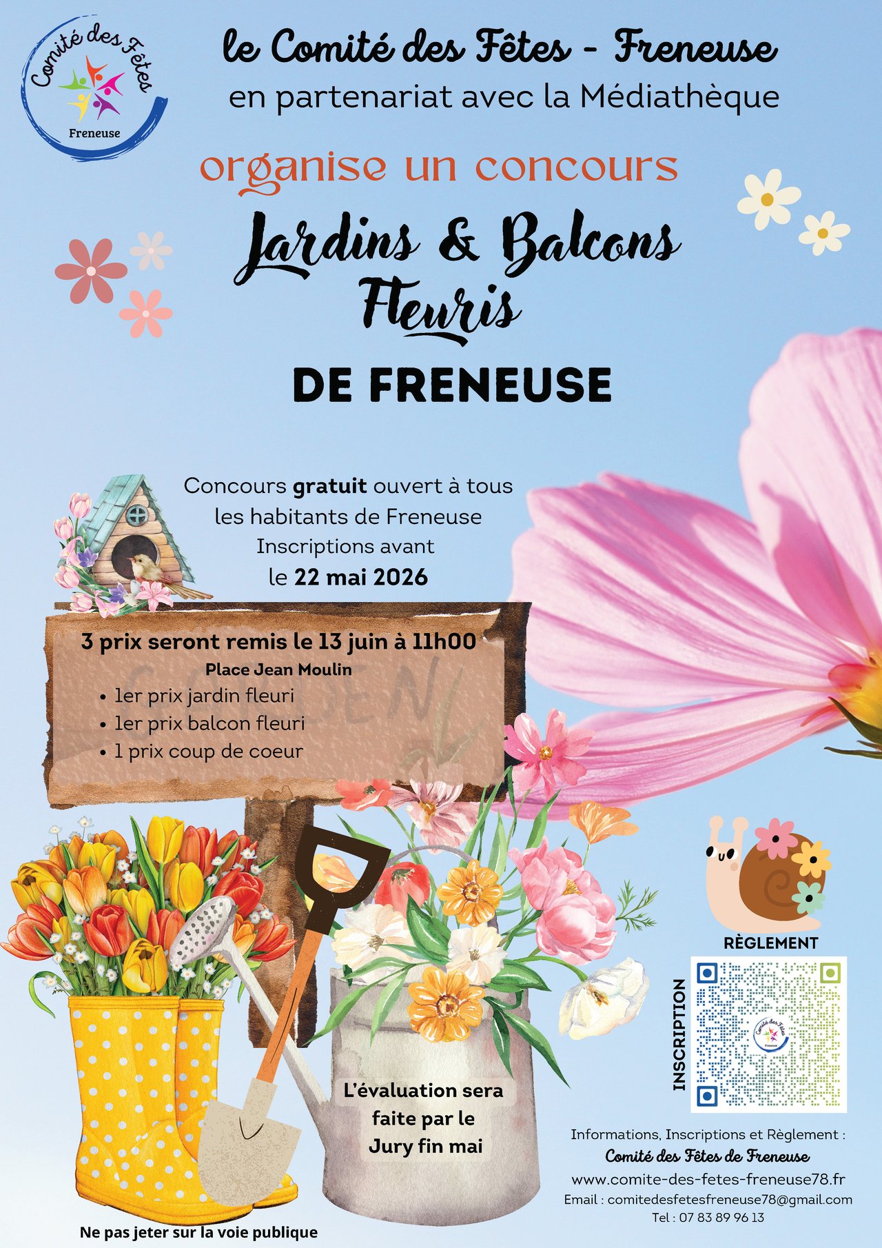 Dans le cadre du thĂšme floral de l'annĂ©e, le ComitĂ© des FĂȘtes de Freneuse, en partenariat avec la mĂ©diathĂšque, lancent le concours Jardins & Balcons fleuris !